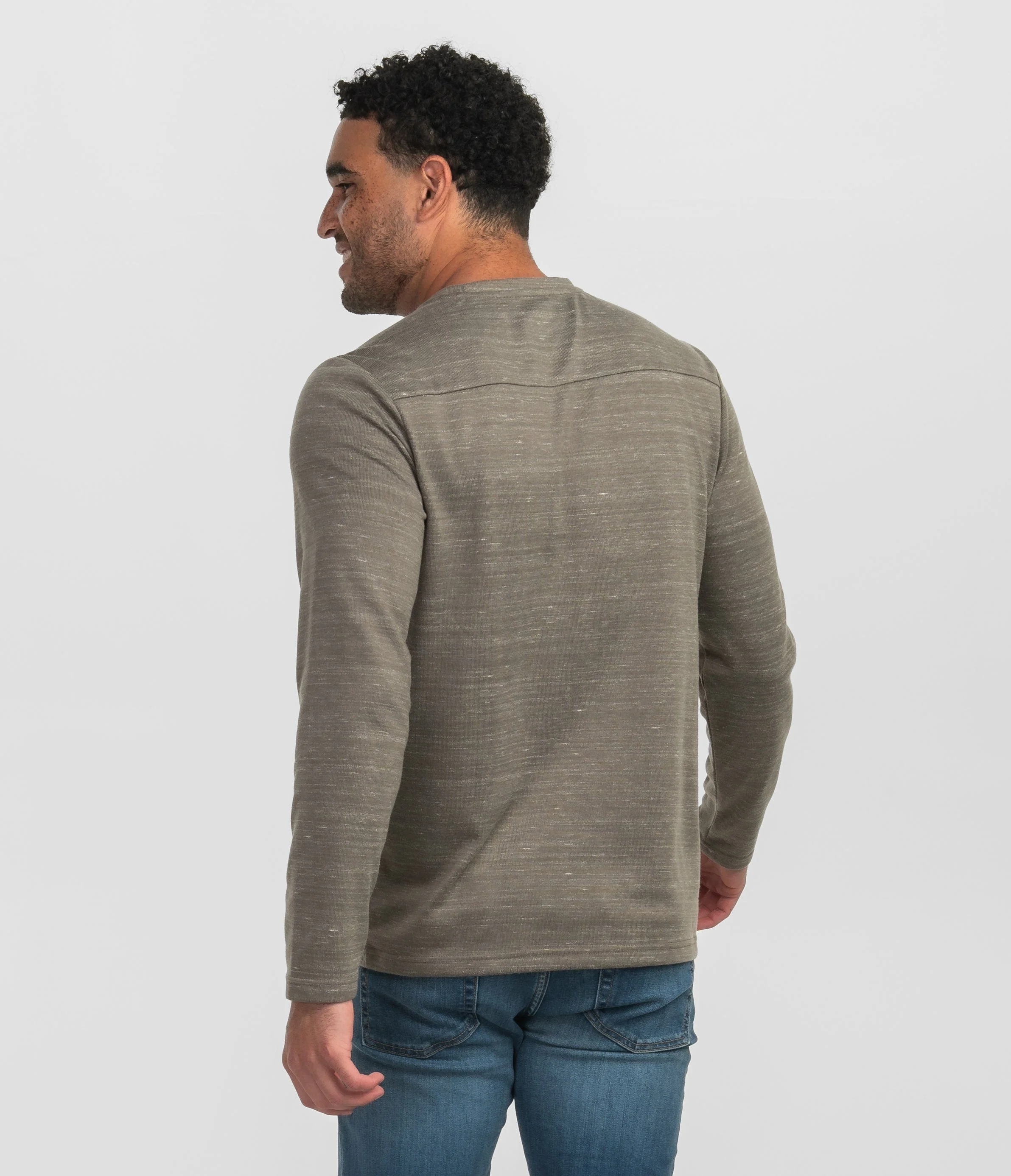 Experience supreme softness in our elevated men's long sleeve crewneck. Made from high-quality heathered jersey knit for unmatched comfort.