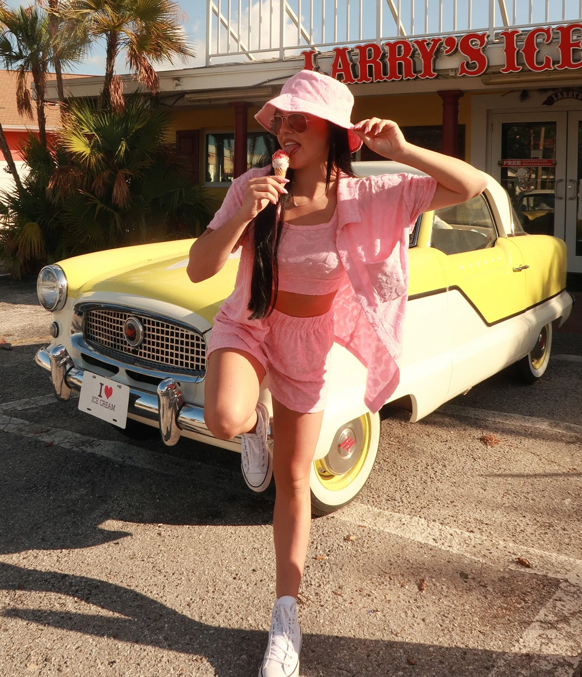 The button-up shirt offers a versatile top to pair with a favorite outfit or bikini and the long-line brami is cut right at the waist for a flattering fit. For more matchy-matchy vibes check out the Towel Off Terry Shorts and Bucket Hat to complete your look.